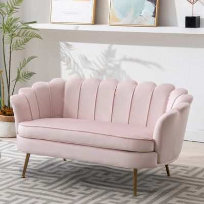 Bali Velvet Loveseat, 58'' Velvet Sofa Accent Couch 2 Seater Small Loveseat for Small Spaces, Living Room (Pink)